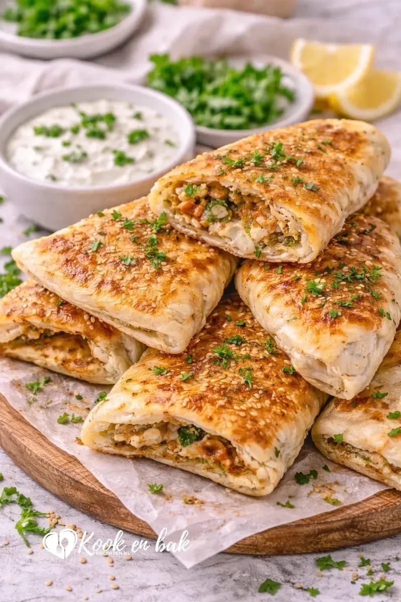 Deze gevulde flatbread is zacht, goudbruin en rijk gevuld. Makkelijk recept met yoghurtdeeg, inclusief tips, airfryeroptie en bewaartips.